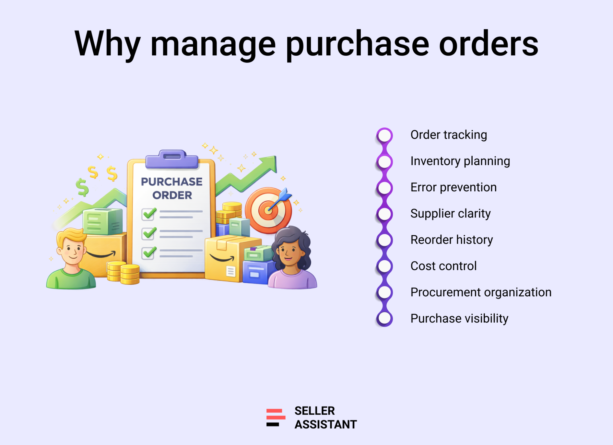 Заказы на покупку являются критически важной частью ведения структурированной оптовой деятельности на Amazon. По мере роста списков поставщиков и увеличения объема заказов опора на электронные таблицы или разрозненные документы усложняет управление закупками и увеличивает риск дорогостоящих ошибок.