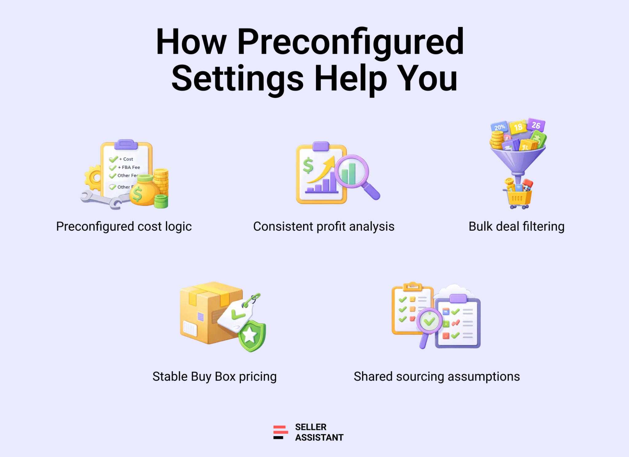 Amazon deal research gets messy fast when you’re working with supplier price lists that contain thousands of SKUs. Manually adjusting fees, shipping, VAT, and Buy Box assumptions for every file wastes time and often produces misleading profit numbers. That’s where preconfigured settings make a real difference.