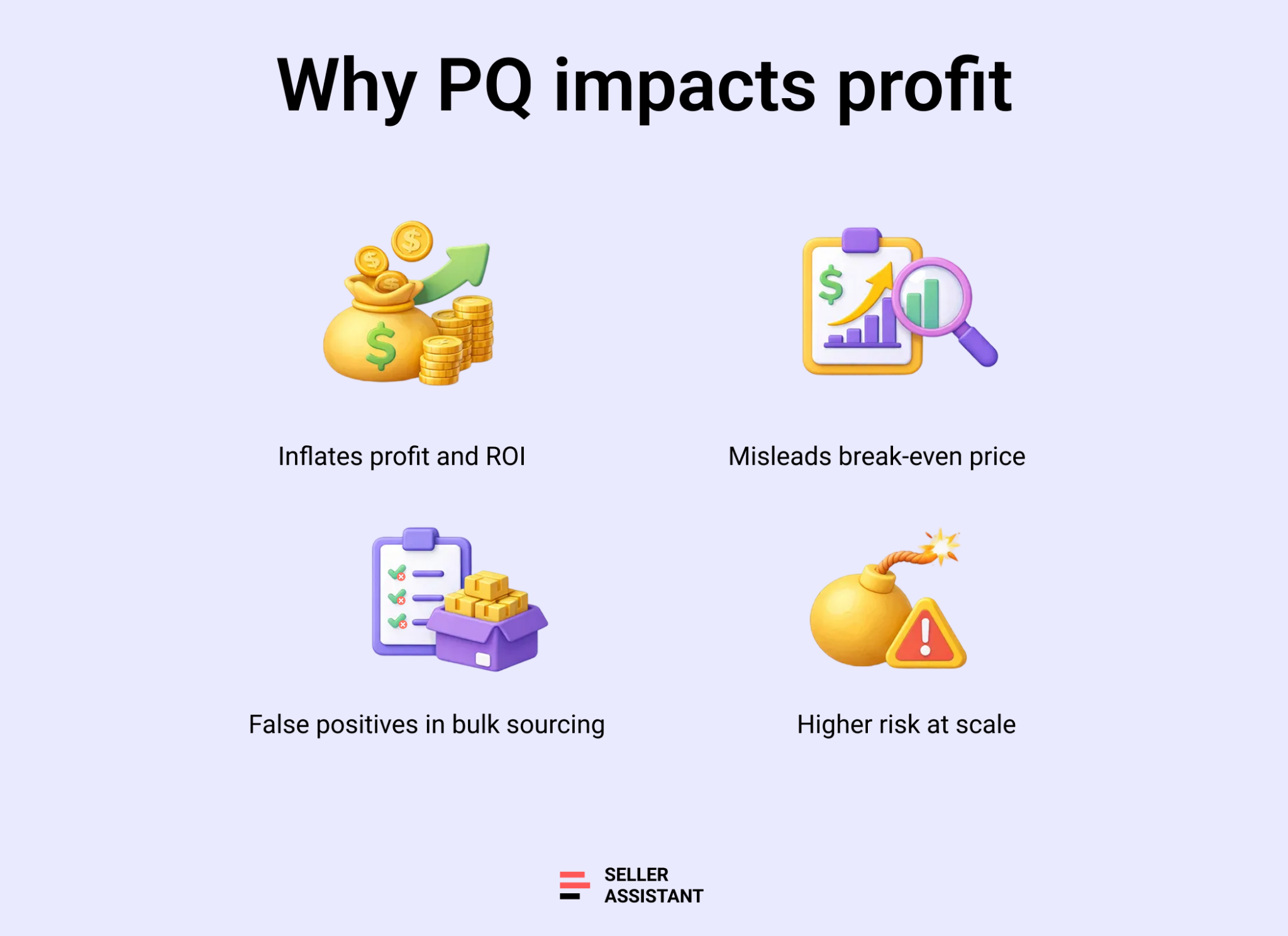 PQ and real Amazon profit | Profit is calculated per Amazon sale, not per supplier unit | “Per-unit profit” assumptions become invalid |