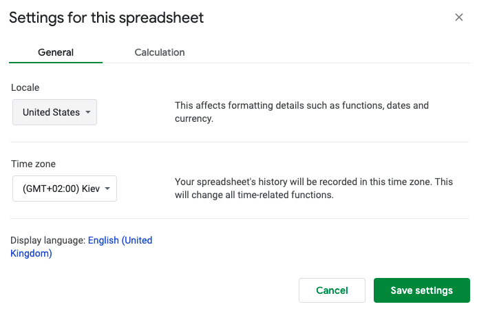 Вот еще одна мелочь, о которой ресерчеры забывают. Если вы работаете на американском маркетплейсе Amazon.com, то в настройках таблицы (spreadsheet settings) желательно выбирать локальные форматы United States: