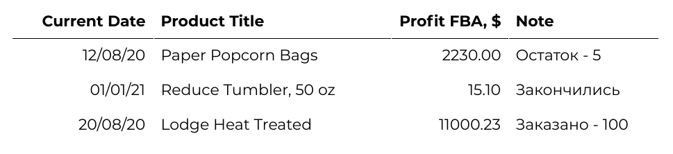 Это будет работать, если в настройках полей экспорта на месте “Your FBA profit $/mo” будет пустой столбец (в примере ниже столбец V:V).