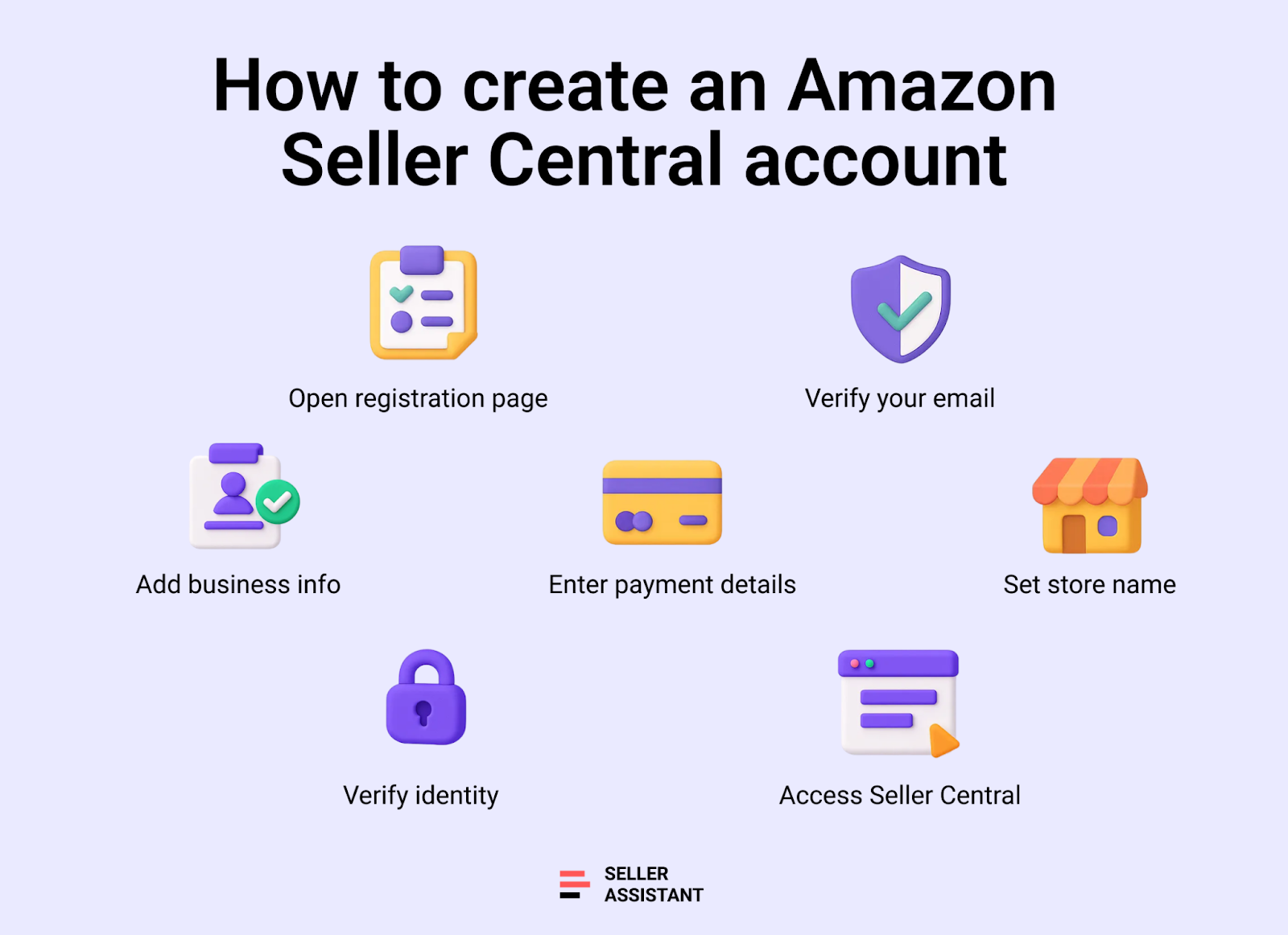 Настройка вашего аккаунта Amazon Seller Central — это первый шаг к началу продаж на Amazon. Этот аккаунт является центром управления вашим бизнесом — здесь вы размещаете товары, управляете запасами, отслеживаете производительность и занимаетесь обслуживанием клиентов. Процесс прост, если вы подготовите документы и выберете правильный тарифный план перед началом.