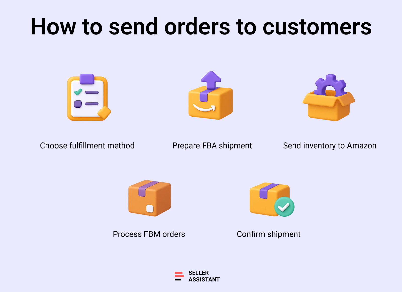 Если вы используете FBA, вы будете готовить и отправлять свои запасы на Amazon через рабочий процесс «Отправить на Amazon» в Seller Central. Этот шаг гарантирует, что ваши запасы достигнут нужного склада Amazon и будут готовы к продаже.
