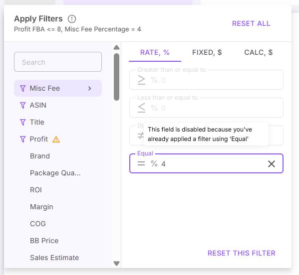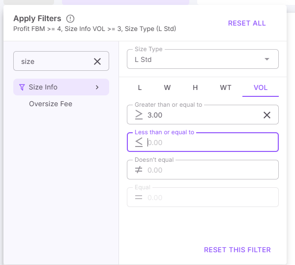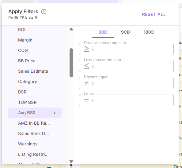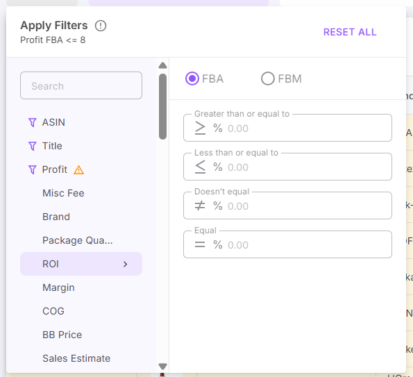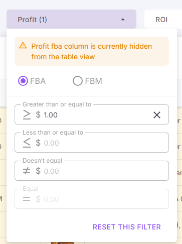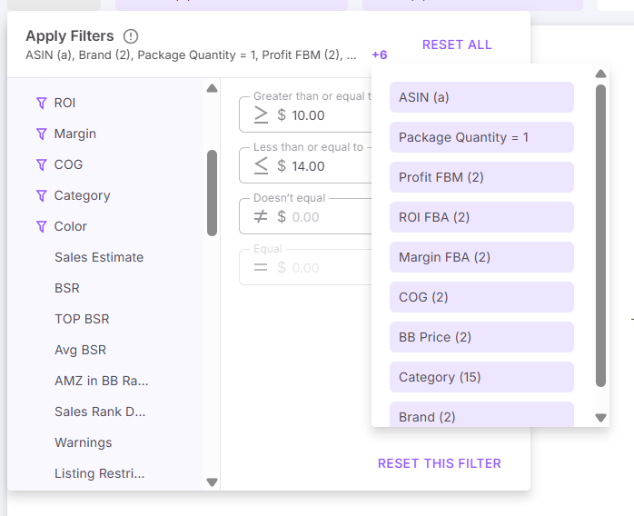 Когда вы получаете таблицу интерфейса с исчерпывающими данными о товарах, вам нужно отфильтровать товары, чтобы сосредоточиться только на тех сделках, которые соответствуют вашим критериям рентабельности, продаж и соответствия. Вместо того чтобы тратить время на прокрутку нерелевантных или рискованных товаров, фильтры помогают продавцам сосредоточиться на сделках с высоким ROI, популярных товарах или листингах, требующих дополнительной проверки.