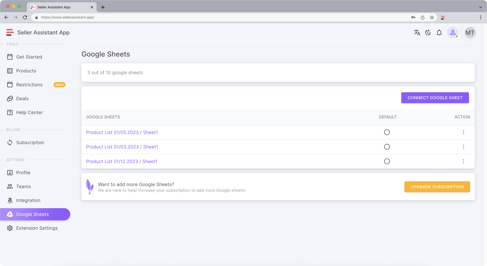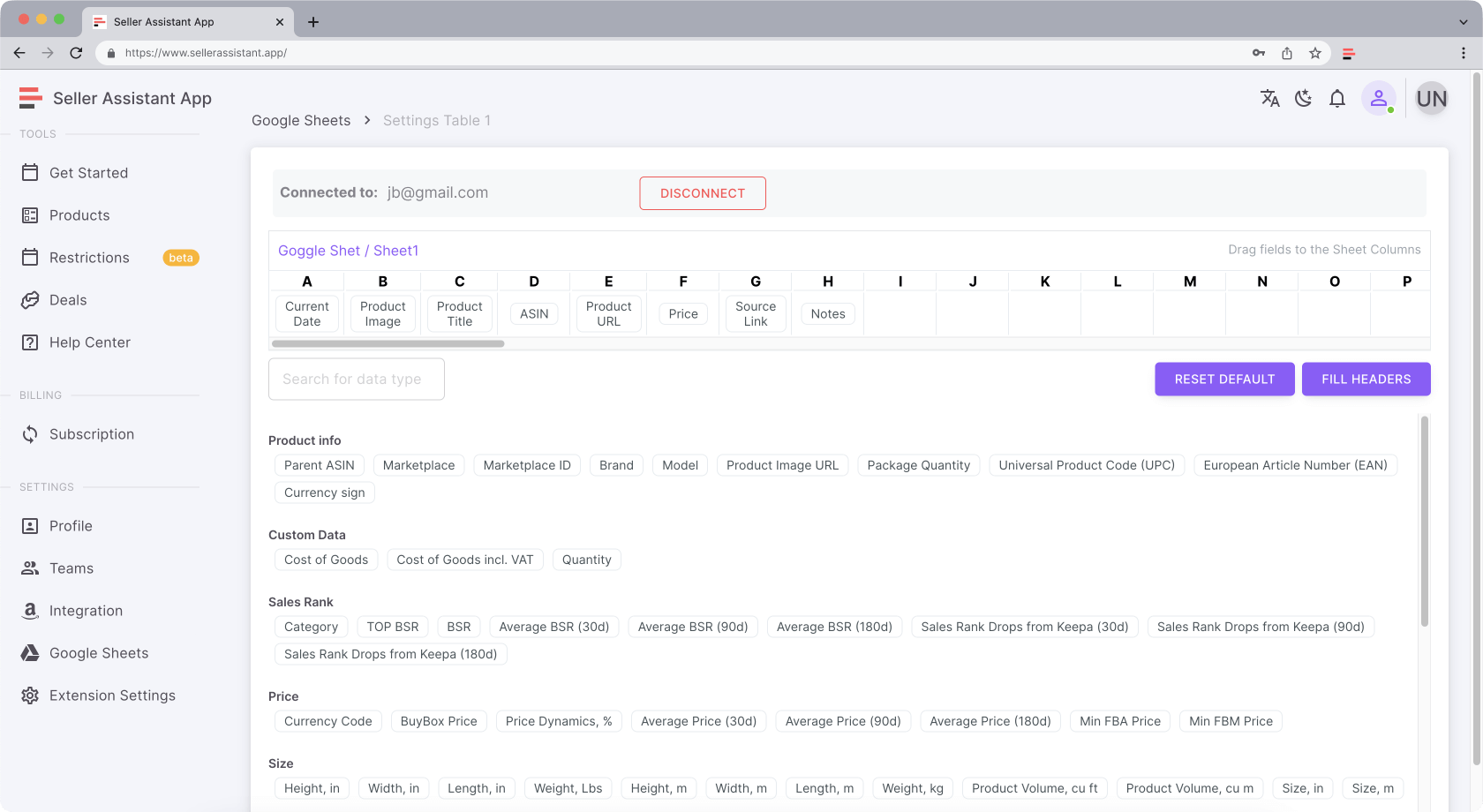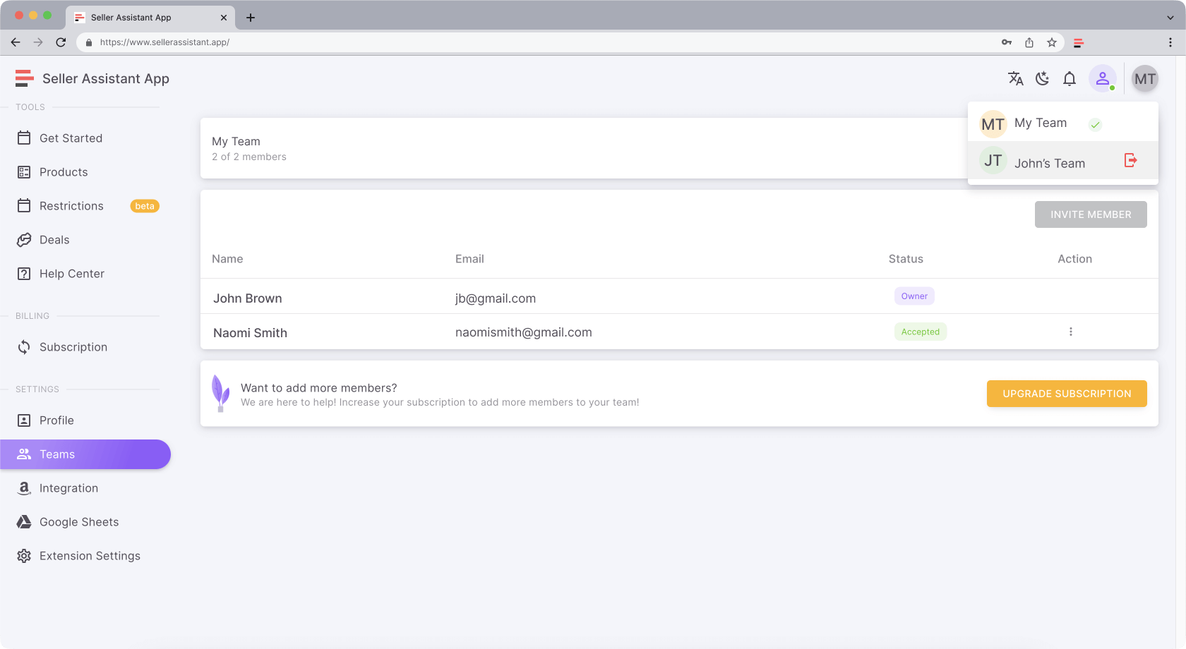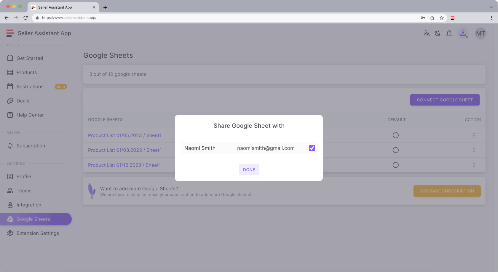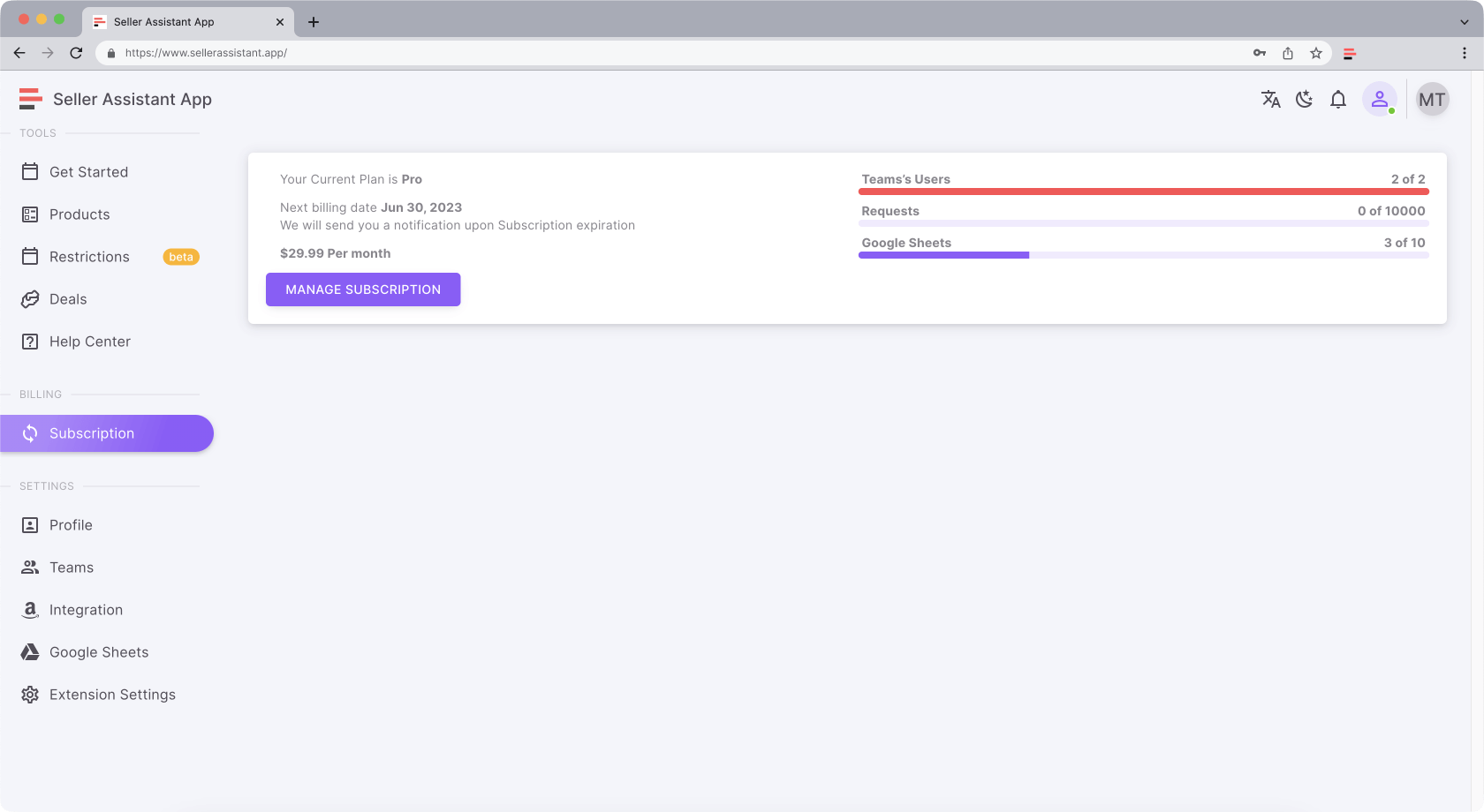 ⚡ Pro planının aylık ücreti 29,99 ABD dolarıdır. Bu plan, 10.000 ürüne kadar araştırma yapmanıza ve 10 Google E-Tablo bağlamanıza olanak tanır. Bu plan ile bir ekip üyesini davet edebilirsiniz.