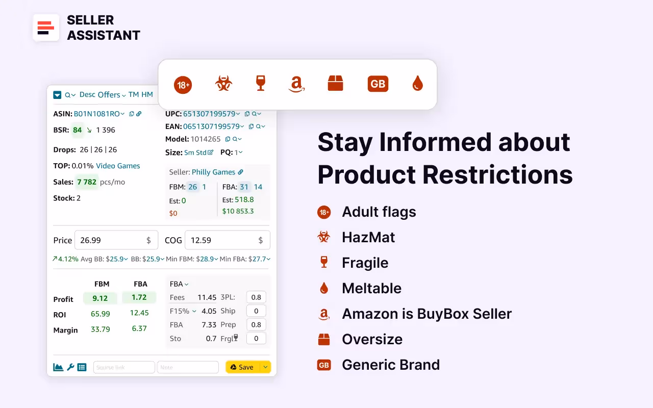The Seller Assistant Extension overlays detailed insights directly on Amazon and supplier sites. Profitability, competition, restrictions, and sales history are all visible in real time to validate deals confidently.